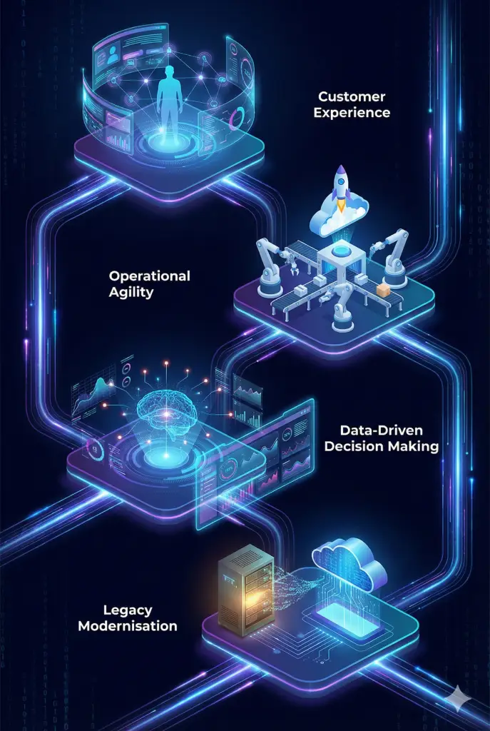 Operational Agility: utilising automation (RPA), cloud migration, and process redesign to reduce manual effort and increase speed-to-market.